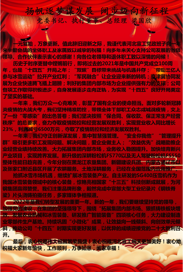 河北宣工黨委書記、執(zhí)行董事、總經(jīng)理梁國欣致新年賀詞